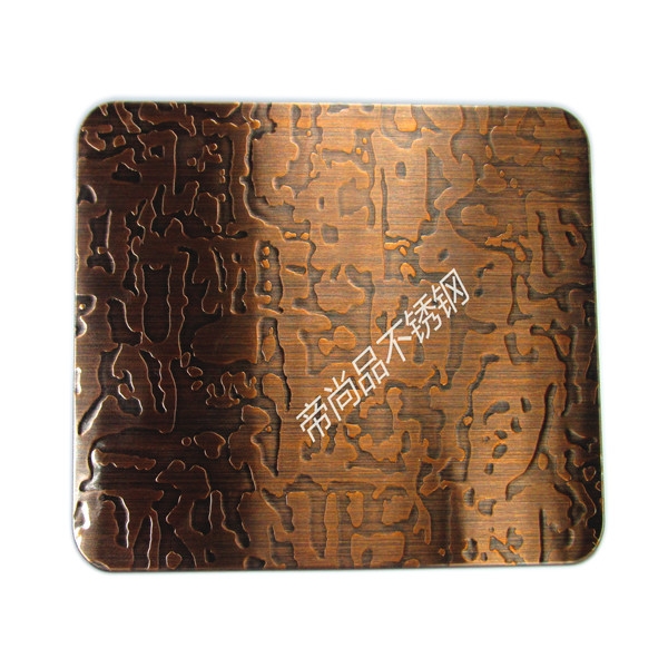 1)采用德國先進水鍍技術,使不銹鋼表面鍍上一定厚度的真紫銅,紅銅,黃銅。達到能做舊拉絲仿古高端裝飾,解決了以往銅鋼復合板材料由高分子膜復合易分離、起泡的缺點。